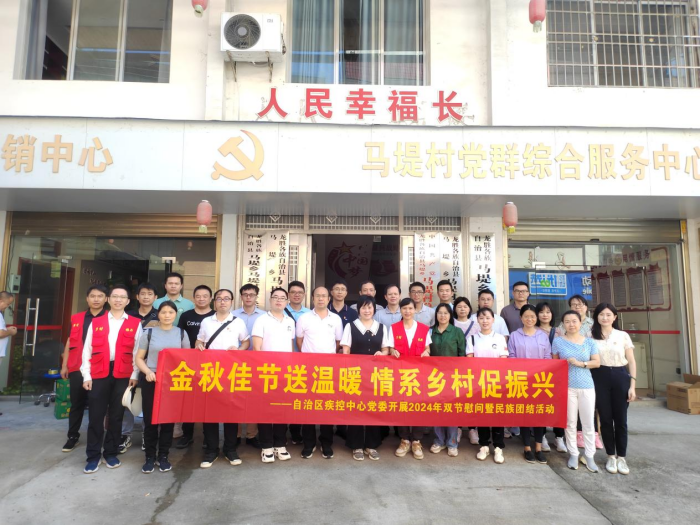 9月10日—11日,自治区疾控中心党委委员、纪委书记李红,党委委员、工会主席周昌明带领各党支部帮扶责任人,深入结对帮扶的桂林市龙胜县马堤乡马堤村开展“金秋佳节送温暖 情系乡村促振兴”慰问活动。