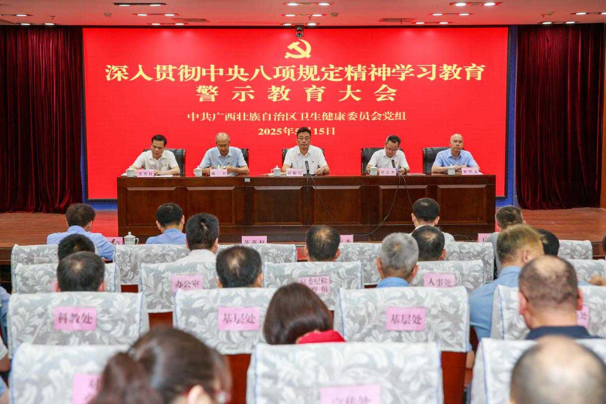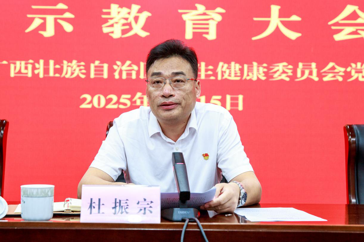 杜振宗指出,卫生健康事业是重要的民生事业,开展深入贯彻中央八项规定精神学习教育,是巩固深化主题教育和党纪学习教育成果、纵深推进全面从严治党的重要举措,是密切党群干群关系、巩固党的执政基础的必然要求。当前,全区卫生健康系统党员领导干部违反中央八项规定精神典型案例仍时有发生,党员领导干部要深刻汲取典型案例教训,提高政治站位,扛起政治担当,以“刮骨疗毒”的勇气和决心推进党风廉政建设和反腐败斗争。